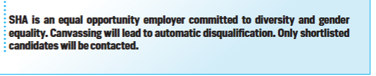 SHA is an equal opportunity employer committed to diversity and gender equality. Canvassing will lead to automatic disqualification. Only shortlisted candidates will be contacted.
