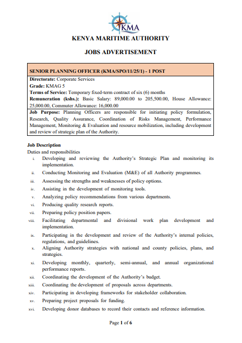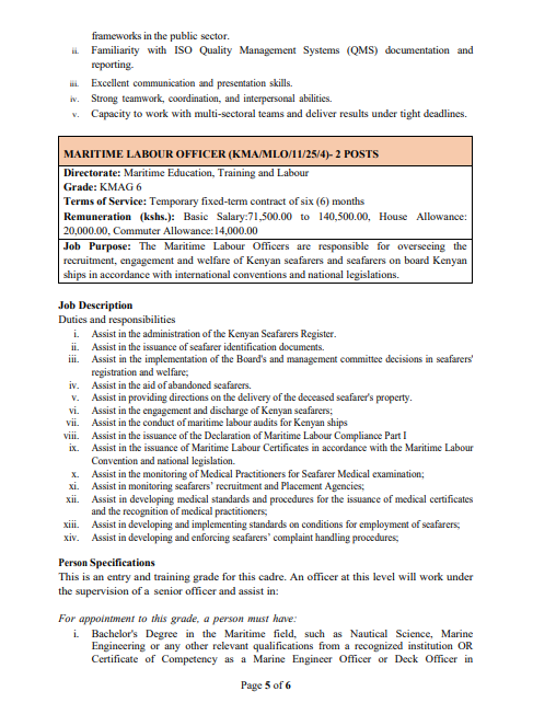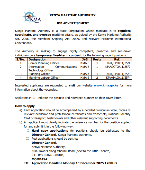 5 Vacancies Open At Kenya Maritime Authority (KMA)