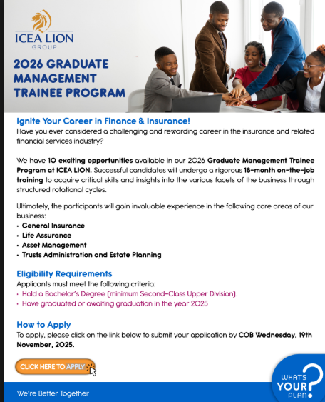 Join the ICEA LION 2026 Graduate Management Trainee Program and gain hands-on experience across finance and insurance from General Insurance to Asset Management.