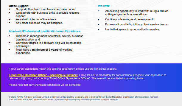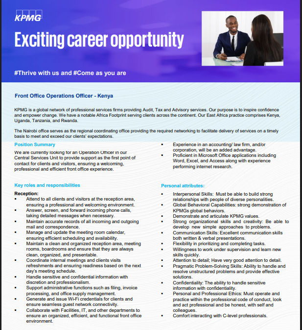 We DO NOT support recruitment agents/entities that demand money or any other favors from applicants to expedite hiring process. We shall not be liable to any money, favors and valuables lost during the process. Incase you see it on this site, report it to us via our Facebook page Pata Kazi so as to take the necessary action. Report the matter to the police asap.