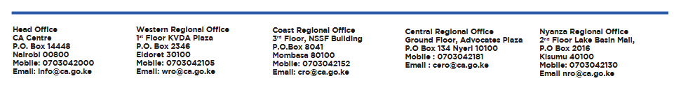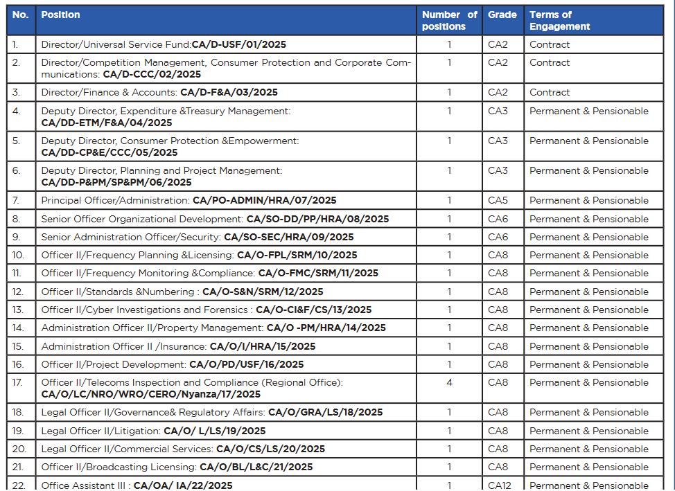 The Authority is an equal opportunity employer and all qualified Kenyans including persons living with disabilities, are encouraged to apply.