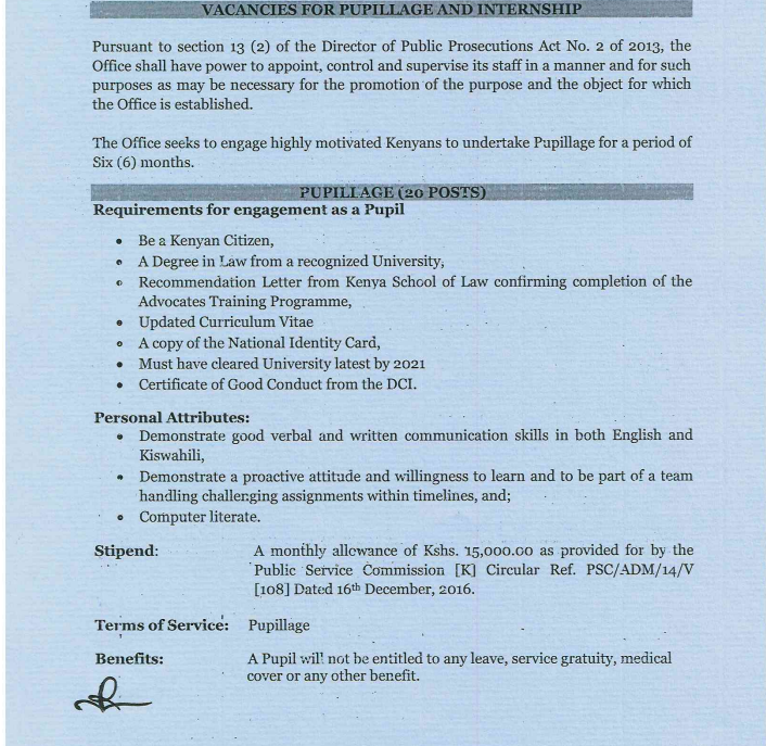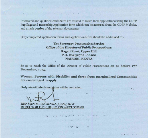 Pupillage & Internship Programme at the Office of the Director of Public Prosecutions (ODPP)