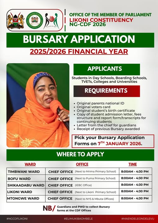 NB: PWDs and guardians to pick forms at the CDF Office.