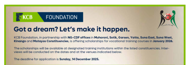 - This scholarship does not cover transport & accommodation costs, successful applicants who might need accommodation are encouraged to make their own arrangements.