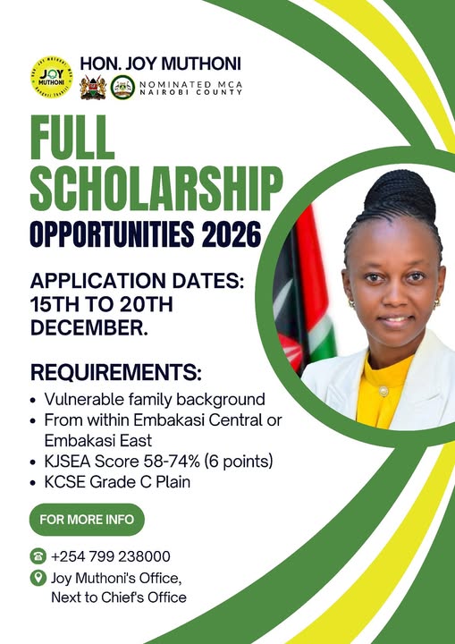 All students should be from a humble background, academically driven and live within Embakasi Central, East or West.