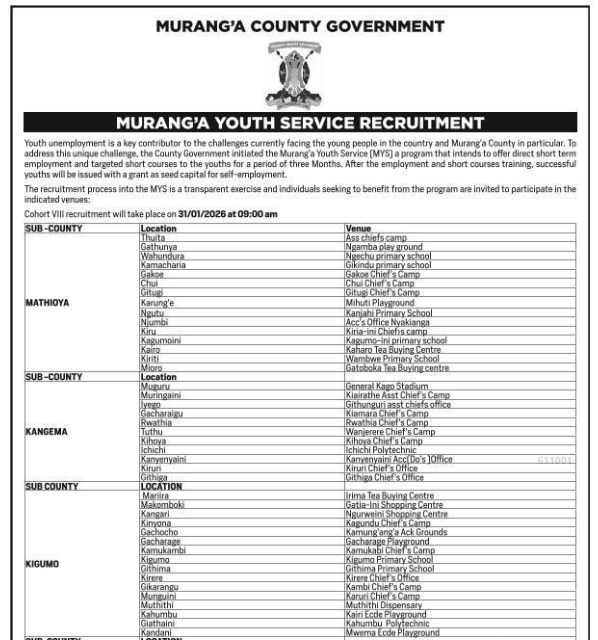 Murang’a Youth Service Cohort III Recruitment Open