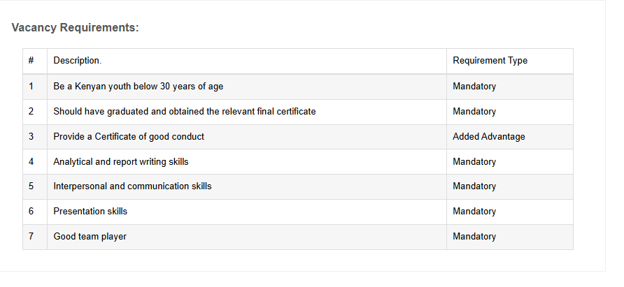 • Shortlisted candidates shall be required to produce ORIGINALS of their National Identity Card, academic and professional certificates, original transcripts and testimonials, detailed curriculum vitae and valid clearance certificate (certificate of good conduct) during the interviews.