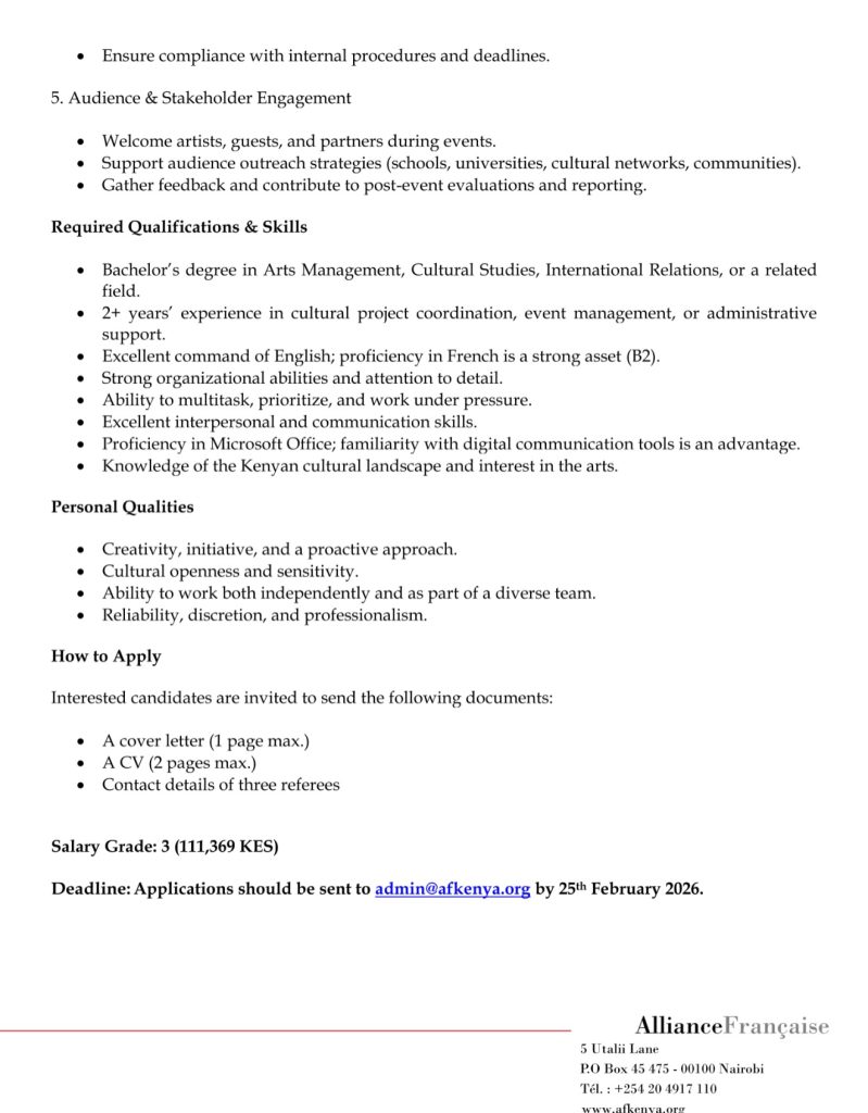 Alliance Française Nairobi Hiring – Cultural Assistant