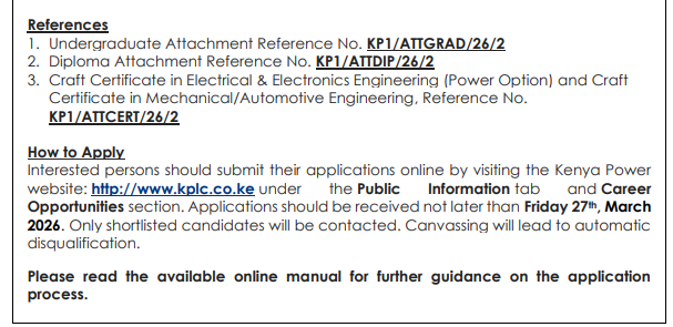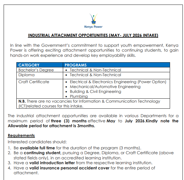 Kenya Power Industrial Attachment Opportunities (MAY- JULY 2026 INTAKE)