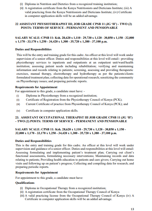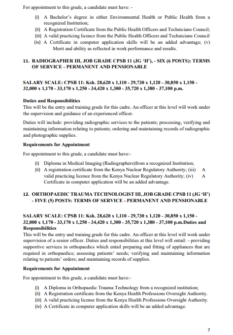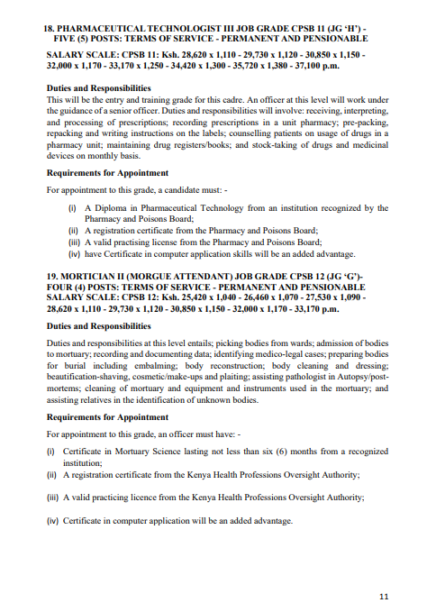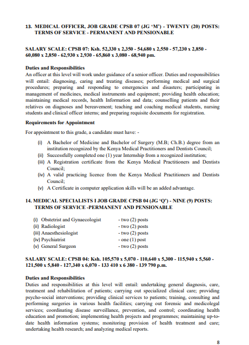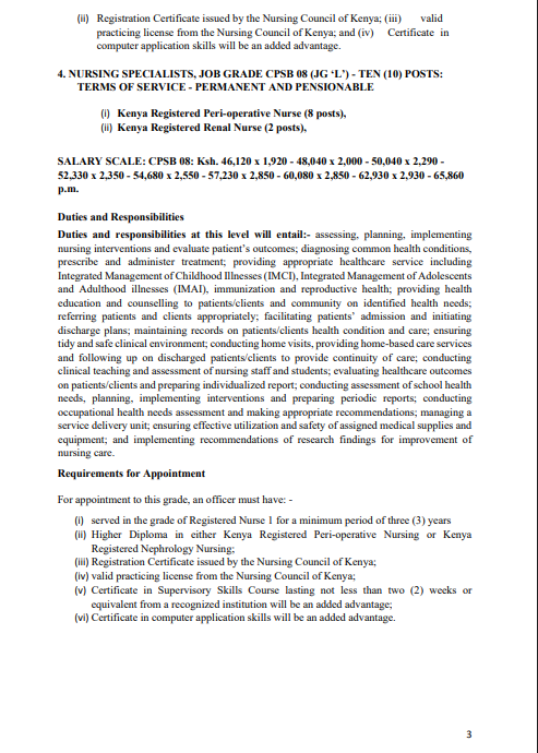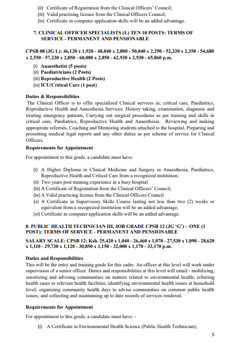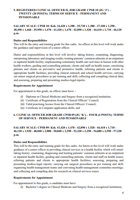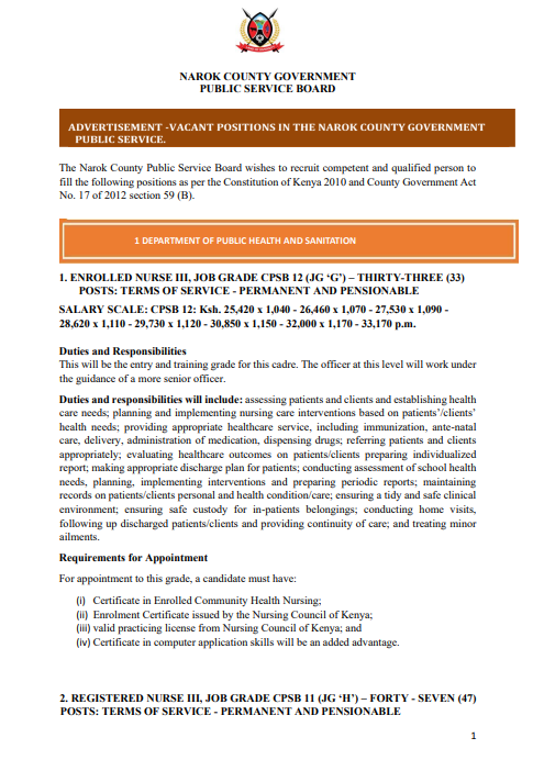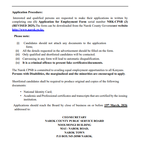 The Narok County Public Service Board wishes to recruit competent and qualified person to fill the following positions as per the Constitution of Kenya 2010 and County Government Act No. 17 of 2012 section 59 (B).