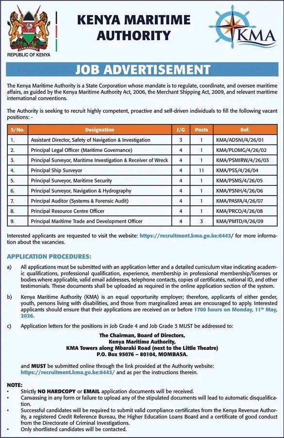 National Government 21 Vacancies Open At KMA by KMax April 21, 2026 written by KMax April 21, 2026 4 Share FacebookTwitterWhatsappTelegram You may also like 77 Vacancies Open At The Kenya Maritime Authority KMA Hiring In 28 Sections Kenya Revenue Authority Hiring Commissioner General
