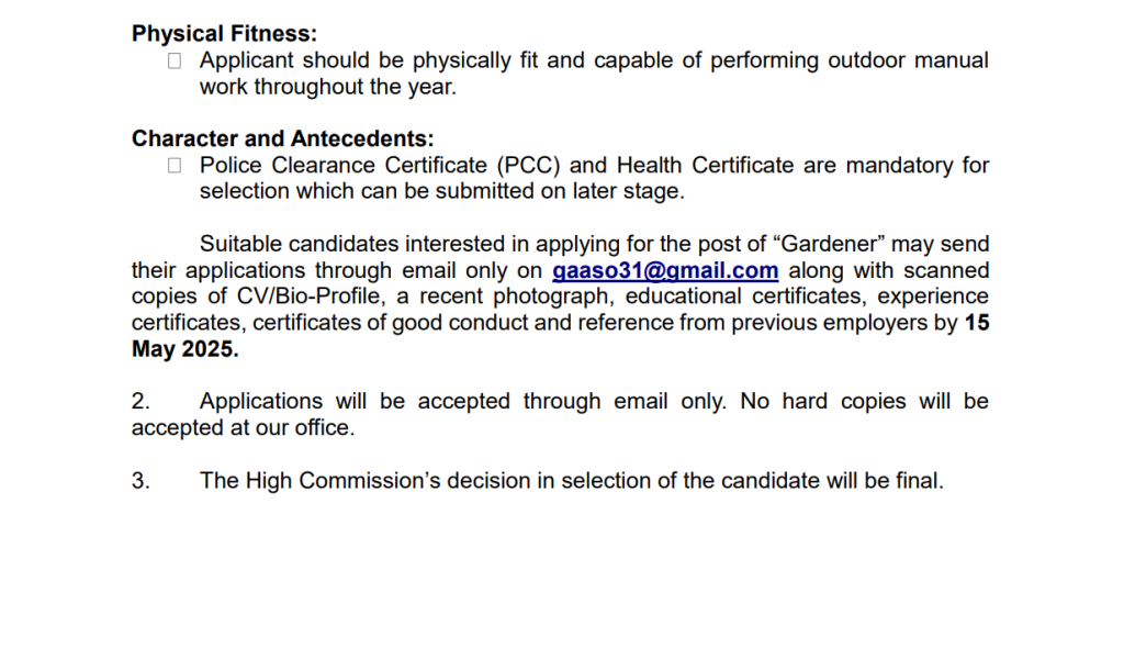 HIGH COMMISSION OF INDIA IN NAIROBI ANNOUNCES JOB VACANCY FOR GARDENER